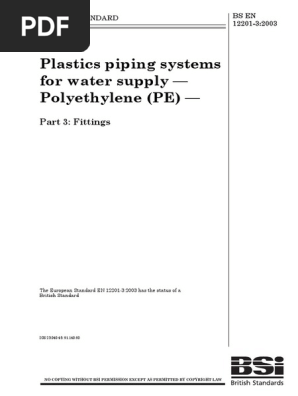 If you are author or own the copyright of this book please report to us by using this DMCA report form. This document was uploaded by user and they confirmed that they have the permission to share it. BS-EN-12201-3pdf - Free download as PDF File pdf Text File txt or read online for free.